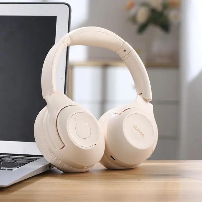 Abingo er vores nyeste og mest avancerede headset. Høretelefonerne er "Over ear", hvilket betyder at dine ører er helt dækket ind og er med til at styrke lydkvaliteten. Headsettet er udstyret med ANC (Active noice cancelling), som gør, at du kan udelukke alt støj når funktionen er slået til. På højre side af høretelefonerne finder du knappen, hvor du kan vælge om funktionen skal være slået til eller fra. Dette gør høretelefonerne utroligt behagelige at have på, hvis du skal bruge musik eller lydbog til at slappe helt af eller for at koncentrere dig.