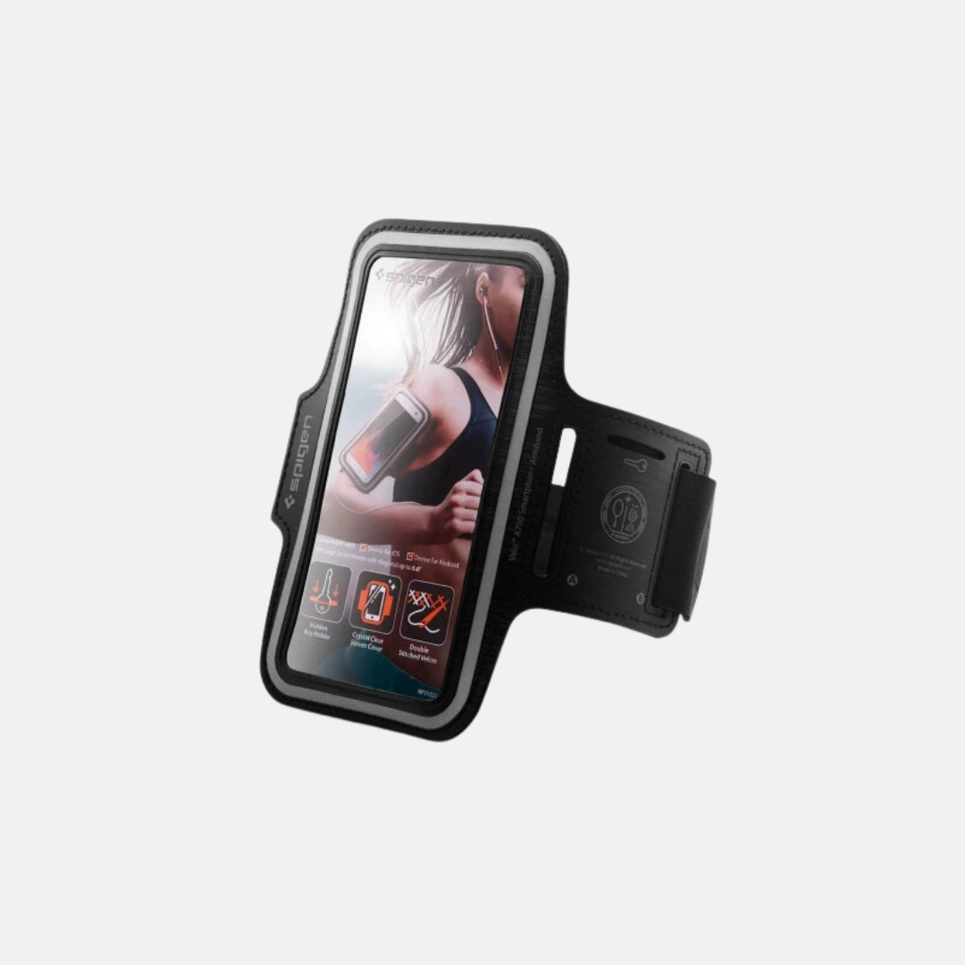 Sidder behageligt på armen med stærk velcro. Perfekt til alle former for sports aktiviteter, hvor du ønsker at medbringe din smartphone.